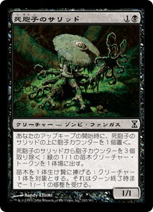 | Rules | At the beginning of your upkeep, put a spore counter on Deathspore Thallid. Remove three spore counters from Deathspore Thallid: Create a 1/1 green Saproling creature token. Sacrifice a Saproling: Target creature gets -1/-1 until end of turn. |