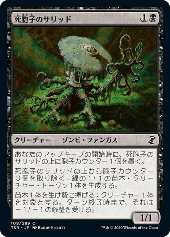 | Rules | At the beginning of your upkeep, put a spore counter on Deathspore Thallid. Remove three spore counters from Deathspore Thallid: Create a 1/1 green Saproling creature token. Sacrifice a Saproling: Target creature gets -1/-1 until end of turn. |