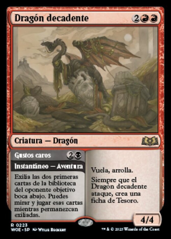 | Rules | Flying, trample Whenever Decadent Dragon attacks, create a Treasure token. // Exile the top two cards of target opponent's library face down. You may look at and play those cards for as long as they remain exiled. |