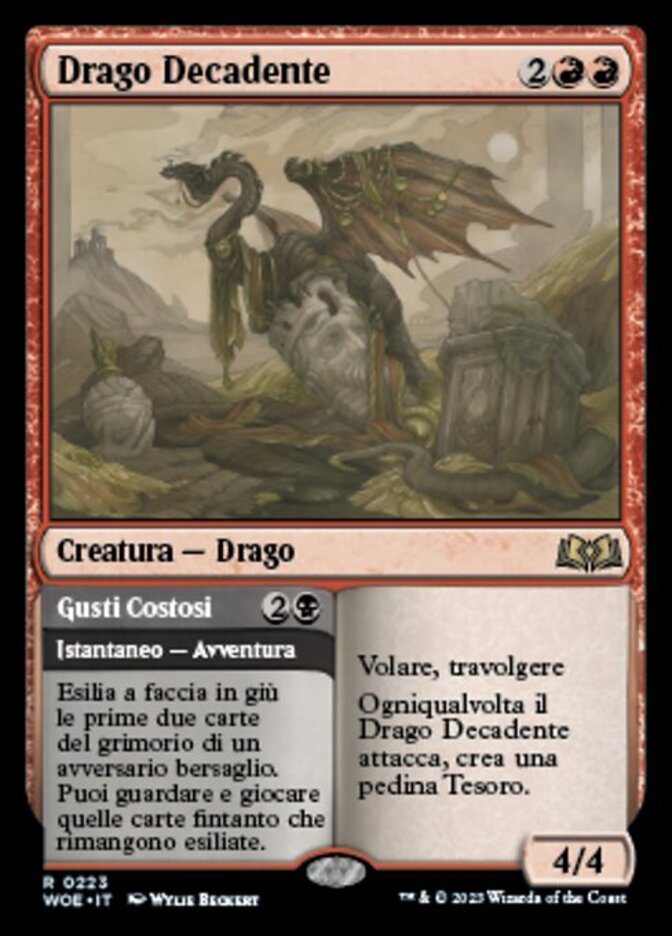 | Rules | Flying, trample Whenever Decadent Dragon attacks, create a Treasure token. // Exile the top two cards of target opponent's library face down. You may look at and play those cards for as long as they remain exiled. |