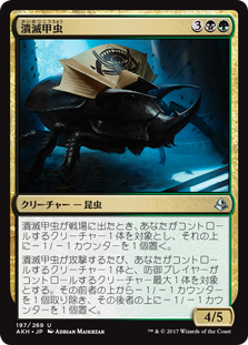 | Rules | When Decimator Beetle enters the battlefield, put a -1/-1 counter on target creature you control. Whenever Decimator Beetle attacks, remove a -1/-1 counter from target creature you control and put a -1/-1 counter on up to one target creature defending player controls. |