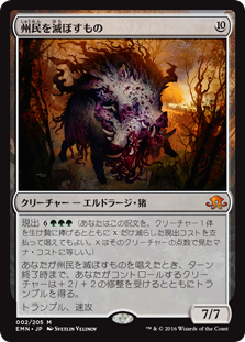 | Rules | Emerge (You may cast this spell by sacrificing a creature and paying the emerge cost reduced by that creature's mana value.) When you cast this spell, creatures you control get +2/+2 and gain trample until end of turn. Trample, haste |