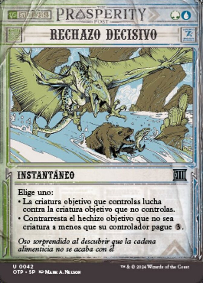 | Rules | Choose one — • Target creature you control fights target creature you don't control. (Each deals damage equal to its power to the other.) • Counter target noncreature spell unless its controller pays . |