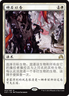 | Rules | Exile target creature and all other creatures its controller controls with the same name as that creature. That player investigates for each nontoken creature exiled this way. |
