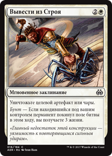 | Rules | Destroy target artifact or enchantment. Revolt — If a permanent you controlled left the battlefield this turn, you gain 3 life. |