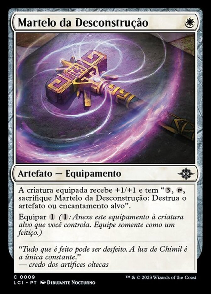 | Rules | Equipped creature gets +1/+1 and has ", , Sacrifice Deconstruction Hammer: Destroy target artifact or enchantment." Equip (: Attach to target creature you control. Equip only as a sorcery.) |