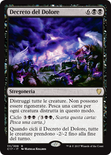 | Rules | Destroy all creatures. They can't be regenerated. Draw a card for each creature destroyed this way. Cycling (, Discard this card: Draw a card.) When you cycle Decree of Pain, all creatures get -2/-2 until end of turn. |