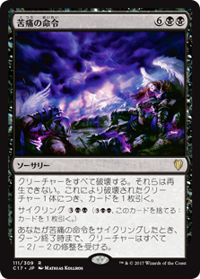 | Rules | Destroy all creatures. They can't be regenerated. Draw a card for each creature destroyed this way. Cycling (, Discard this card: Draw a card.) When you cycle Decree of Pain, all creatures get -2/-2 until end of turn. |
