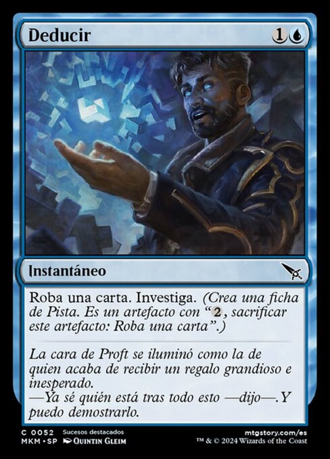 | Rules | Draw a card. Investigate. (Create a Clue token. It's an artifact with ", Sacrifice this artifact: Draw a card.") |