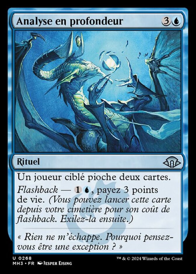 | Rules | Target player draws two cards. Flashback—, Pay 3 life. (You may cast this card from your graveyard for its flashback cost. Then exile it.) |