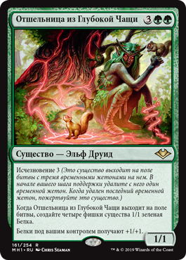 | Rules | Vanishing 3 (This creature enters the battlefield with three time counters on it. At the beginning of your upkeep, remove a time counter from it. When the last is removed, sacrifice it.) When Deep Forest Hermit enters the battlefield, create four 1/1 green Squirrel creature tokens. Squirrels you control get +1/+1. |