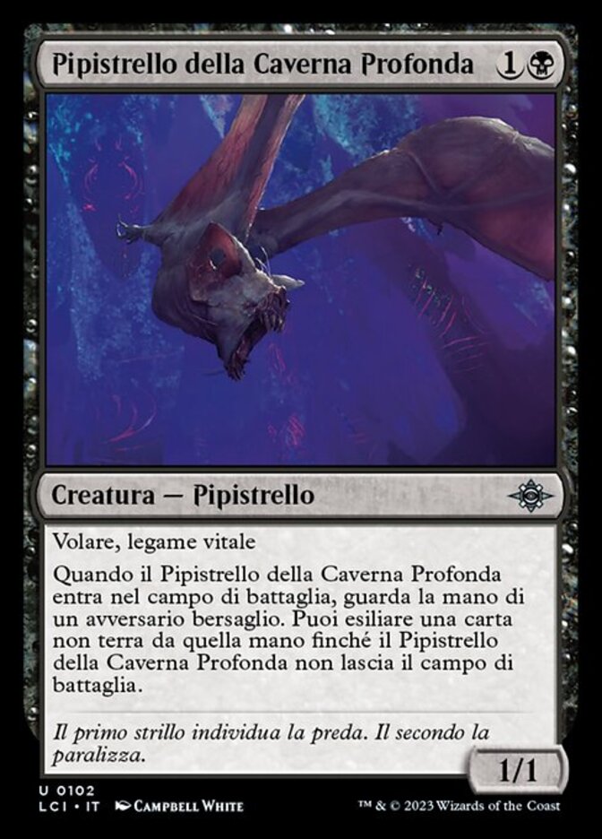 | Rules | Flying, lifelink When Deep-Cavern Bat enters the battlefield, look at target opponent's hand. You may exile a nonland card from it until Deep-Cavern Bat leaves the battlefield. |