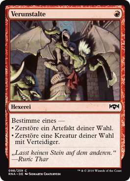 | Rules | Choose one — • Destroy target artifact. • Destroy target creature with defender. |