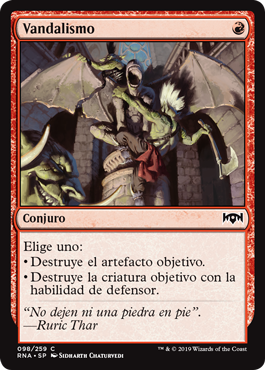 | Rules | Choose one — • Destroy target artifact. • Destroy target creature with defender. |