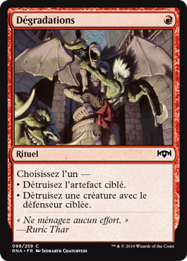 | Rules | Choose one — • Destroy target artifact. • Destroy target creature with defender. |