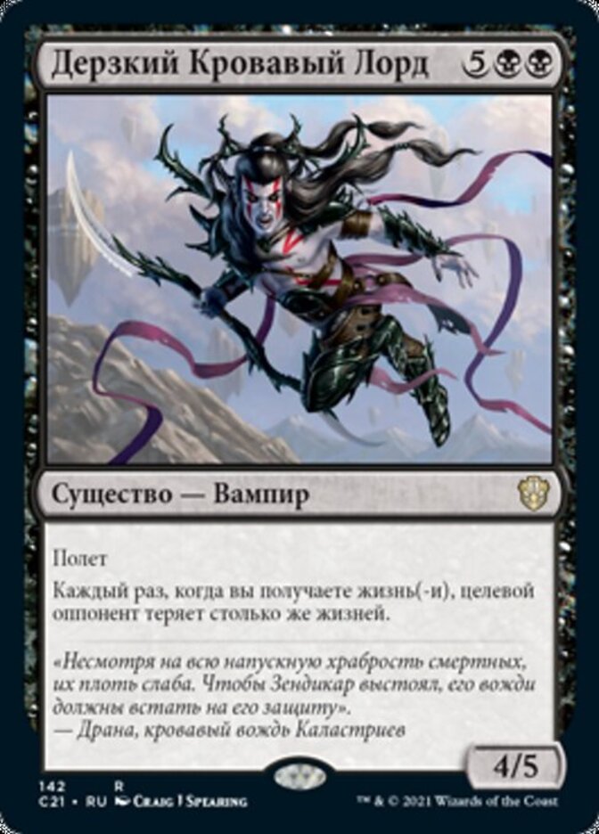 | Flavor | "Despite their bravado, mortals are fragile. If Zendikar is to endure, its lords must save it."-Drana, Kalastria bloodchief |