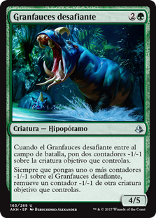 | Rules | When Defiant Greatmaw enters the battlefield, put two -1/-1 counters on target creature you control. Whenever you put one or more -1/-1 counters on Defiant Greatmaw, remove a -1/-1 counter from another target creature you control. |