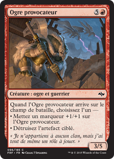 | Rules | When Defiant Ogre enters the battlefield, choose one — • Put a +1/+1 counter on Defiant Ogre. • Destroy target artifact. |