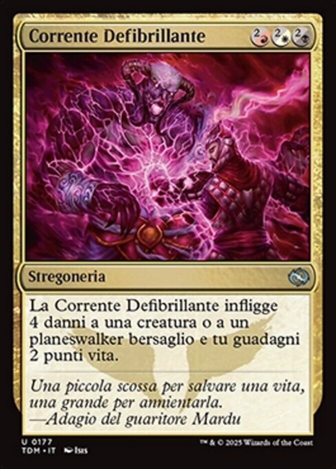 | Rules | Defibrillating Current deals 4 damage to target creature or planeswalker and you gain 2 life. |