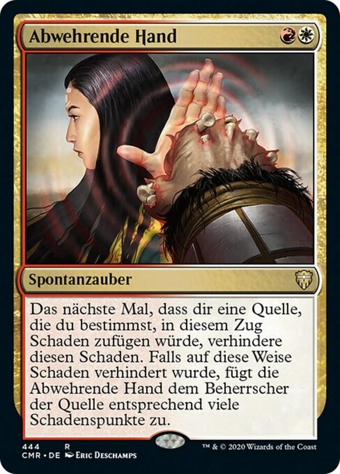 | Rules | The next time a source of your choice would deal damage to you this turn, prevent that damage. If damage is prevented this way, Deflecting Palm deals that much damage to that source's controller. |
