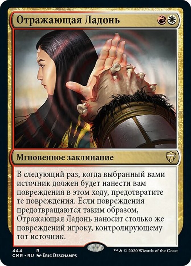 | Rules | The next time a source of your choice would deal damage to you this turn, prevent that damage. If damage is prevented this way, Deflecting Palm deals that much damage to that source's controller. |