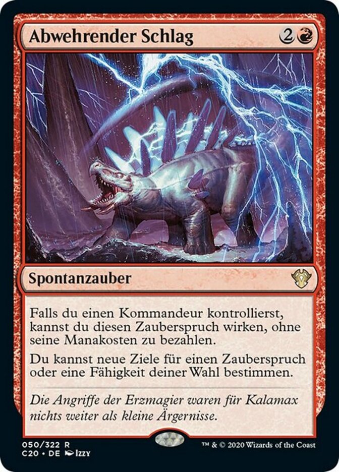 | Rules | If you control a commander, you may cast this spell without paying its mana cost. You may choose new targets for target spell or ability. |