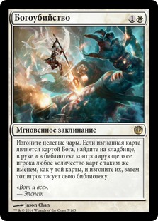 | Rules | Exile target enchantment. If the exiled card is a God card, search its controller's graveyard, hand, and library for any number of cards with the same name as that card and exile them. Then that player shuffles. |