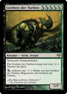 | Rules | Trample Deity of Scars enters the battlefield with two -1/-1 counters on it. , Remove a -1/-1 counter from Deity of Scars: Regenerate Deity of Scars. |