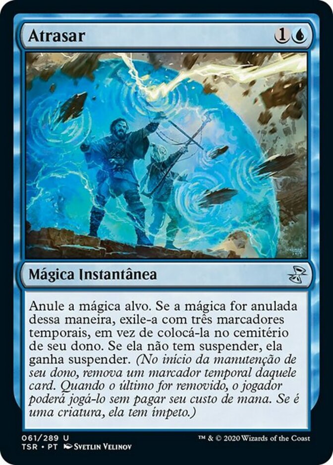 | Rules | Counter target spell. If the spell is countered this way, exile it with three time counters on it instead of putting it into its owner's graveyard. If it doesn't have suspend, it gains suspend. (At the beginning of its owner's upkeep, remove a time counter from that card. When the last is removed, the player plays it without paying its mana cost. If it's a creature, it has haste.) |