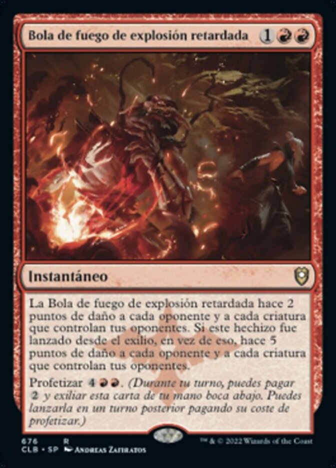 | Rules | Delayed Blast Fireball deals 2 damage to each opponent and each creature they control. If this spell was cast from exile, it deals 5 damage to each opponent and each creature they control instead. Foretell (During your turn, you may pay and exile this card from your hand face down. Cast it on a later turn for its foretell cost.) |