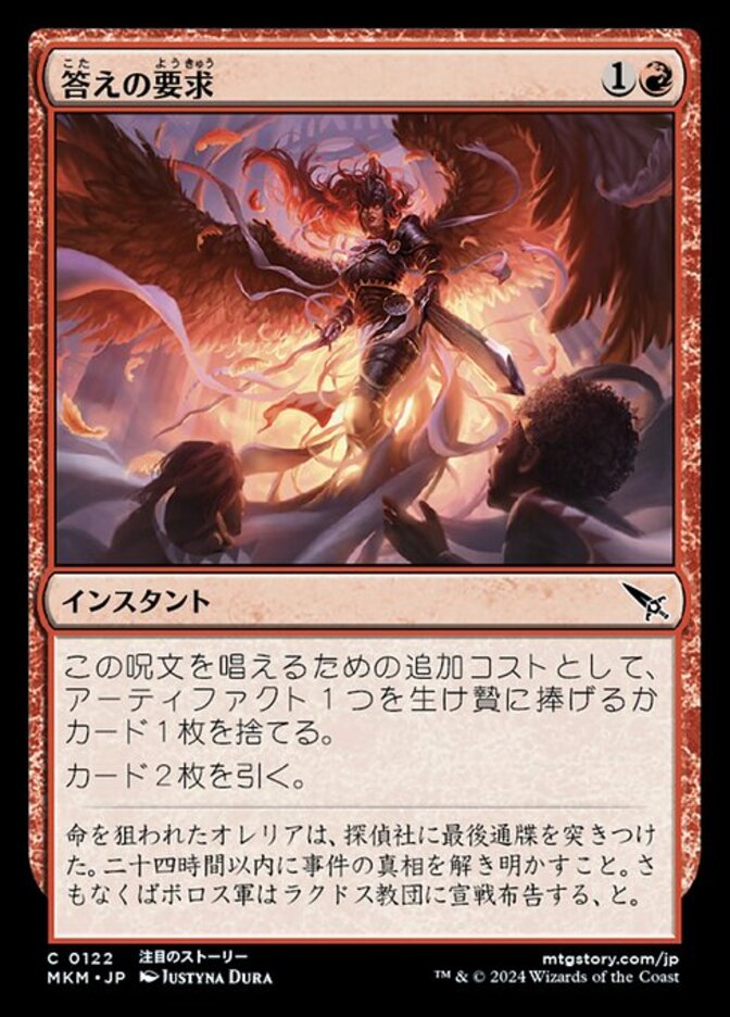 | Flavor | After the attempt on Aurelia's life, she gave the Agency an ultimatum: solve the case in twenty-four hours, or the Boros Legion would declare war on the Cult of Rakdos. |