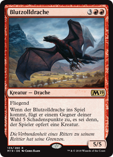 | Rules | Flying When Demanding Dragon enters the battlefield, it deals 5 damage to target opponent unless that player sacrifices a creature. |