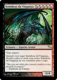 | Rules | When you cast this spell, return all cards named Demigod of Revenge from your graveyard to the battlefield. Flying, haste |