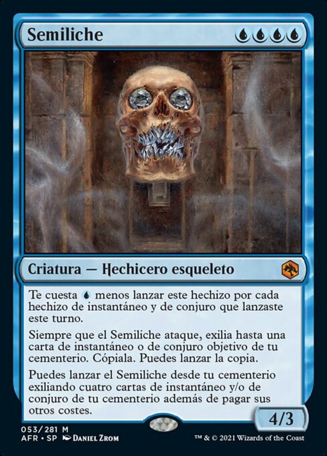 | Rules | This spell costs less to cast for each instant and sorcery spell you've cast this turn. Whenever Demilich attacks, exile up to one target instant or sorcery card from your graveyard. Copy it. You may cast the copy. You may cast Demilich from your graveyard by exiling four instant and/or sorcery cards from your graveyard in addition to paying its other costs. |
