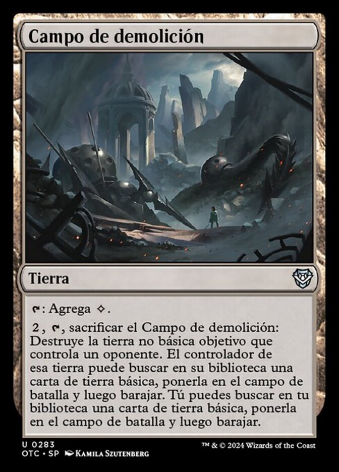 | Rules | : Add . , , Sacrifice Demolition Field: Destroy target nonbasic land an opponent controls. That land's controller may search their library for a basic land card, put it onto the battlefield, then shuffle. You may search your library for a basic land card, put it onto the battlefield, then shuffle. |