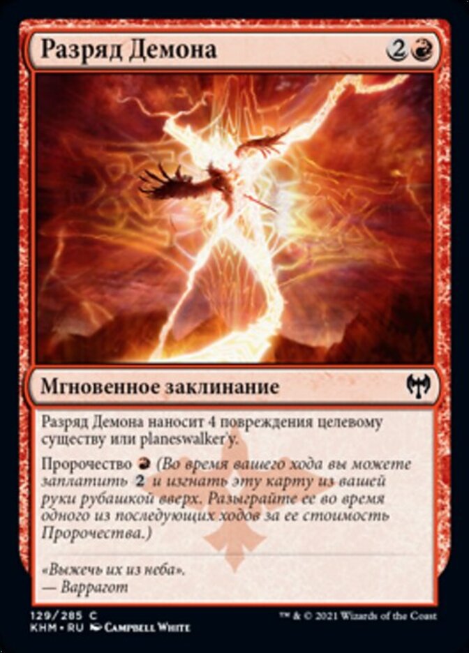 | Rules | Demon Bolt deals 4 damage to target creature or planeswalker. Foretell (During your turn, you may pay and exile this card from your hand face down. Cast it on a later turn for its foretell cost.) |