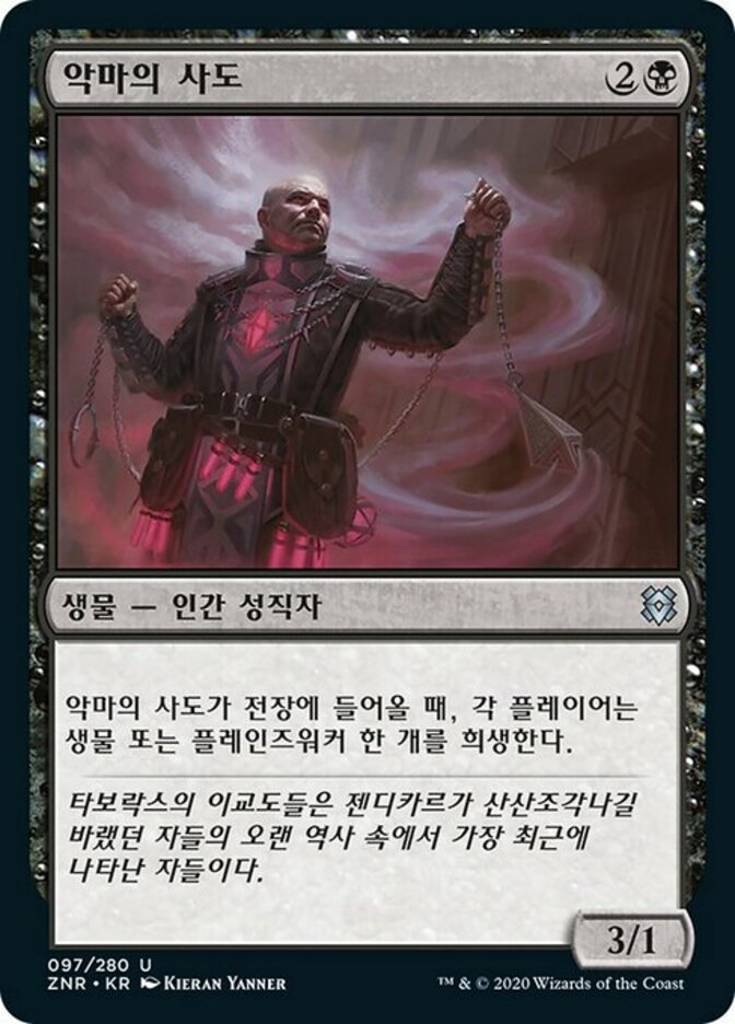 | Rules | When Demon's Disciple enters the battlefield, each player sacrifices a creature or planeswalker. |