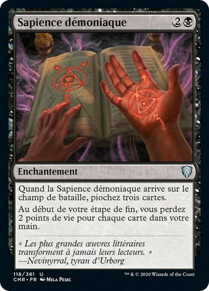 | Rules | When Demonic Lore enters the battlefield, draw three cards. At the beginning of your end step, you lose 2 life for each card in your hand. |