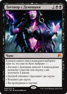 | Rules | At the beginning of your upkeep, choose one that hasn't been chosen — • Demonic Pact deals 4 damage to any target and you gain 4 life. • Target opponent discards two cards. • Draw two cards. • You lose the game. |