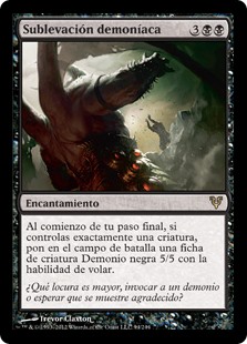 | Rules | At the beginning of your end step, if you control exactly one creature, create a 5/5 black Demon creature token with flying. |