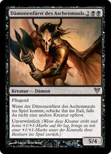 | Rules | Flying When Demonlord of Ashmouth enters the battlefield, exile it unless you sacrifice another creature. Undying (When this creature dies, if it had no +1/+1 counters on it, return it to the battlefield under its owner's control with a +1/+1 counter on it.) |