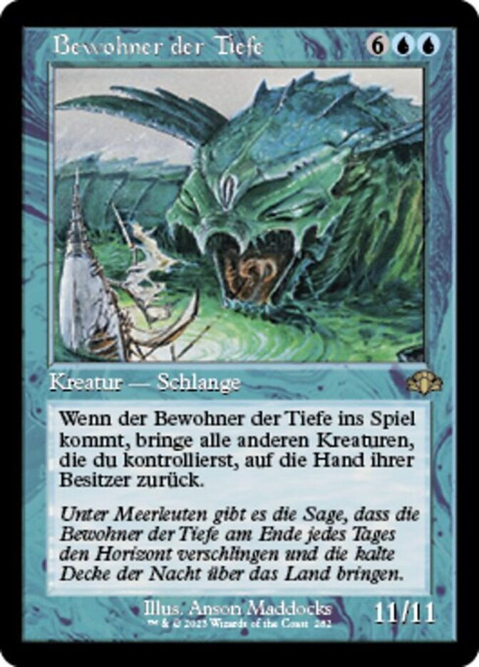 | Rules | When Denizen of the Deep enters the battlefield, return each other creature you control to its owner's hand. |
