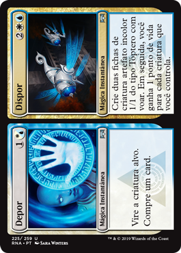 | Rules | Tap target creature. Draw a card. // Create two 1/1 colorless Thopter artifact creature tokens with flying, then you gain 1 life for each creature you control. |