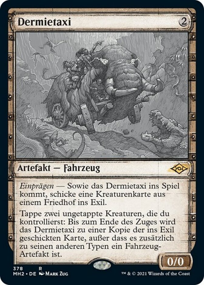 | Rules | Imprint — As Dermotaxi enters the battlefield, exile a creature card from a graveyard. Tap two untapped creatures you control: Until end of turn, Dermotaxi becomes a copy of the exiled card, except it's a Vehicle artifact in addition to its other types. |