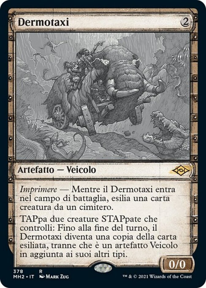 | Rules | Imprint — As Dermotaxi enters the battlefield, exile a creature card from a graveyard. Tap two untapped creatures you control: Until end of turn, Dermotaxi becomes a copy of the exiled card, except it's a Vehicle artifact in addition to its other types. |