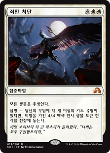 | Rules | Exile all creatures. Delirium — Create a 4/4 white Angel creature token with flying if there are four or more card types among cards in your graveyard. |