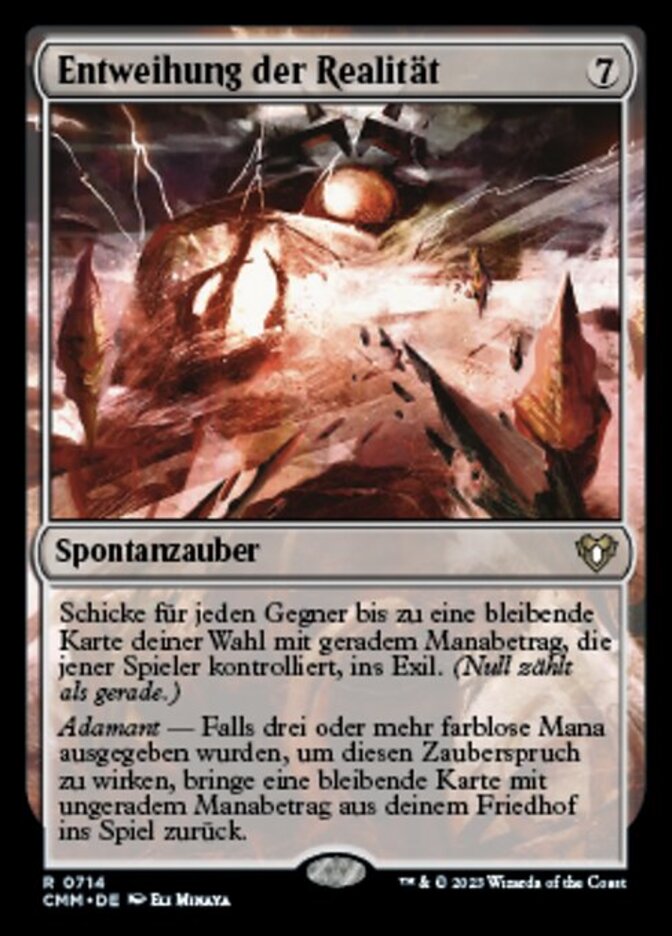 | Rules | For each opponent, exile up to one target permanent that player controls with an even mana value. (Zero is even.) Adamant — If at least three colorless mana was spent to cast this spell, return a permanent card with an odd mana value from your graveyard to the battlefield. |