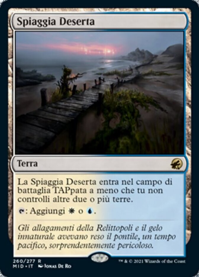 | Rules | Deserted Beach enters the battlefield tapped unless you control two or more other lands. : Add or . |