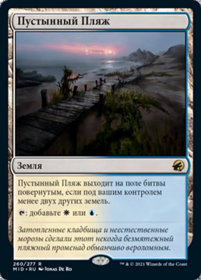 | Rules | Deserted Beach enters the battlefield tapped unless you control two or more other lands. : Add or . |