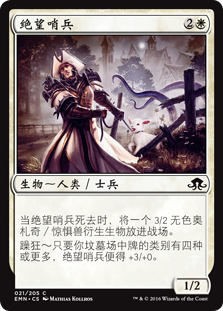 | Rules | When Desperate Sentry dies, create a 3/2 colorless Eldrazi Horror creature token. Delirium — Desperate Sentry gets +3/+0 as long as there are four or more card types among cards in your graveyard. |